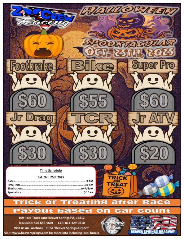 25 SAT HALLOWEEN RACE / TEST & TUNE 10AM – 2PM OR TO RACE IS DONE