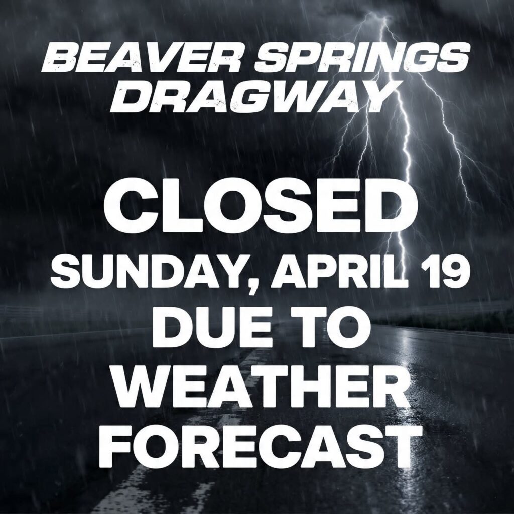 APRIL 19TH TEST AND TUNE CLOSED DUE TO WEATHER FORECAST